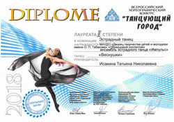 два диплома лауреатов II степени за детский танец «Фантазеры» (возрастная категория: дети до 7 лет) и за эстрадный танец «Мыльные фантазии» (возрастная категория: 12-16 лет);