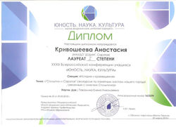 Арина Гераничева выступила с работой «Голубые купола» (страницы истории храма во имя Сошествия Святого Духа в Саратове) на секции «Застывшая музыка Саратова», а Настя Кривошеева – с работой «Столыпин и Саратов» (экскурсия по памятным местам нашего города, связанным с именем П.А. Столыпина) на секции «Саратовская кругосветка». На обеих секциях было очень много докладов на очень разные темы. Наши девушки замечательно справились со своей задачей, ответили на вопросы жюри и получили заслуженный результат: дипломы 2 места. Мы поздравляем наших победительниц и надеемся, что лучшие победы у них еще впереди!