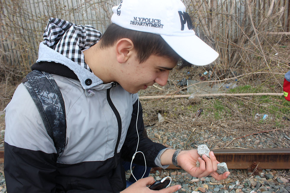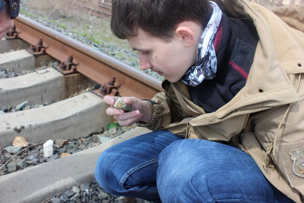 Хорошая погода и деловой настрой на поиск способствовали удачным находкам ребят. Необычен был объект геологической экскурсии. Старая насыпь железной дороги изобиловала разнообразием магматических и метаморфических горных пород. Теперь на практике закреплялись знания, полученные за время аудиторных занятий. Хорошо узнаваемыми были образцы разнообразных гранитов, амфиболитов, яшм и слюдистых сланцев. Многие из них можно рассматривать как образцы поделочного камня. Очень привлекательно выглядели образцы филлитов и жильного кварца. Загадочно блестели на солнце золотистые вкрапления минерала халькопирита. За неполные четыре часа экскурсии юные геологи собрали значительную коллекцию горных пород и минералов. Теперь предстоит их более подробное определение при консультации со специалистами геологического факультета СГУ. Многие образцы пополнят нашу учебную коллекцию.
