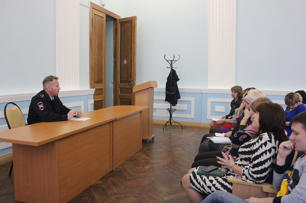 В МАУДО «Дворец творчества детей и молодежи» состоялось открытое совещание с участием администрации, заведующих отделами, методистов и заведующего отделом пропаганды безопасности дорожного движения капитаном полиции Мамченко В.П. На нем обсуждался вопрос соблюдения правил безопасной перевозки туристических групп автобусными турами и профилактической работы по обеспечению безопасности детей на дорогах, объектах ЖД транспорта, водных объектах.