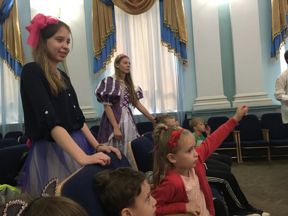 В театральной студии креативно играли, творили, музицировали, ставили этюды, музыкальные сценки, сказки и даже снимали фильм с Антоновой Ольгой Владимировной.