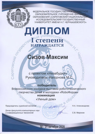 Наши юные инженеры победили во Всероссийском on-line конкурсе-выставке роботехнического творчества «RoboФорум», который проводился ФГБОУ ВО «Саратовским национальным исследовательским государственным университетом имени Н.Г. Чернышевского» и Автономной некоммерческой организацией «Научно-исследовательским центром «Образование. Качество. Отрасль».