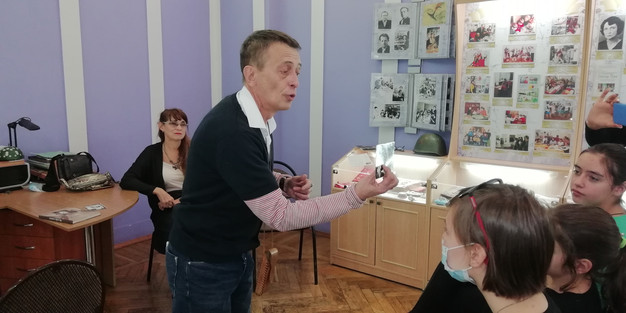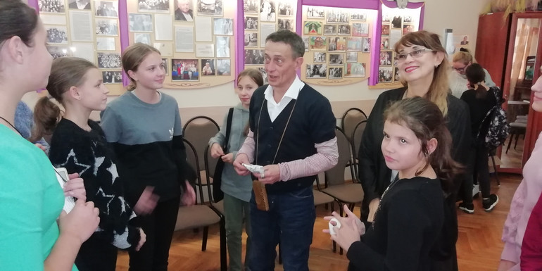 На память об этой встрече Павел Михайлович подарил в наш музей книгу «Основы сценического движения», по которой он тренировался в свои 16 лет, и две самодельных программы театра «Тога» («Товарищество гимназических актеров») гимназии № 1, руководителем которого он был в 2014-2018 годах. В сравнении с этими современными программками, сверстанными на компьютере и напечатанными на лазерном принтере, программы «Молодой гвардии» 1990-х годов были менее яркими, но зато, созданные при помощи гелевых ручек, туши и обычной печатной машинки, они представляют собой авторские рисунки и текст. Такие программки есть в собрании музея, и мы показали их современным школьникам.