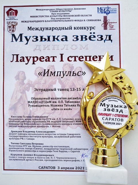 Ансамбль «Импульс» под руководством Исакиной Т.Н. стал обладателем Лауреата 1 степени с танцем «Лети со мной» и Лауреата 2 степени с танцем «Постарайтесь вернуться назад». Ансамбль народного танца «Околица» под руководством Черняевой Е.Е. стал лауреатом 2 степени на Международном конкурсе «Музыка звёзд». Ансамбль народного танца «Околица»